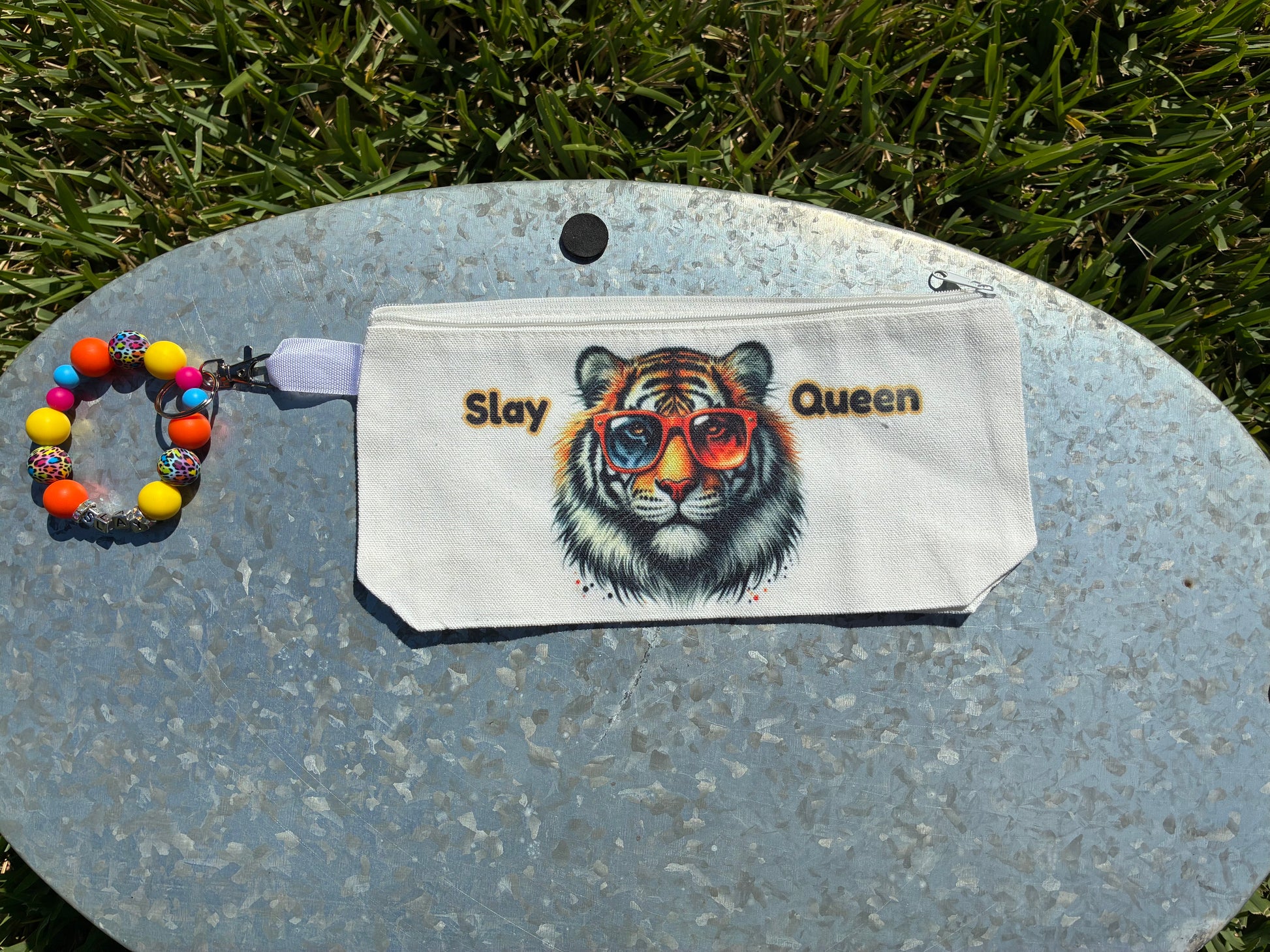 Elevate your beauty routine with this reusable canvas makeup bag featuring a striking animal print design. Crafted to be both durable and eco-friendly, it keeps your cosmetics organized whether at home or on the go. The vibrant sublimated print adds a touch of personality, making it a stylish and practical accessory you'll love to carry daily.